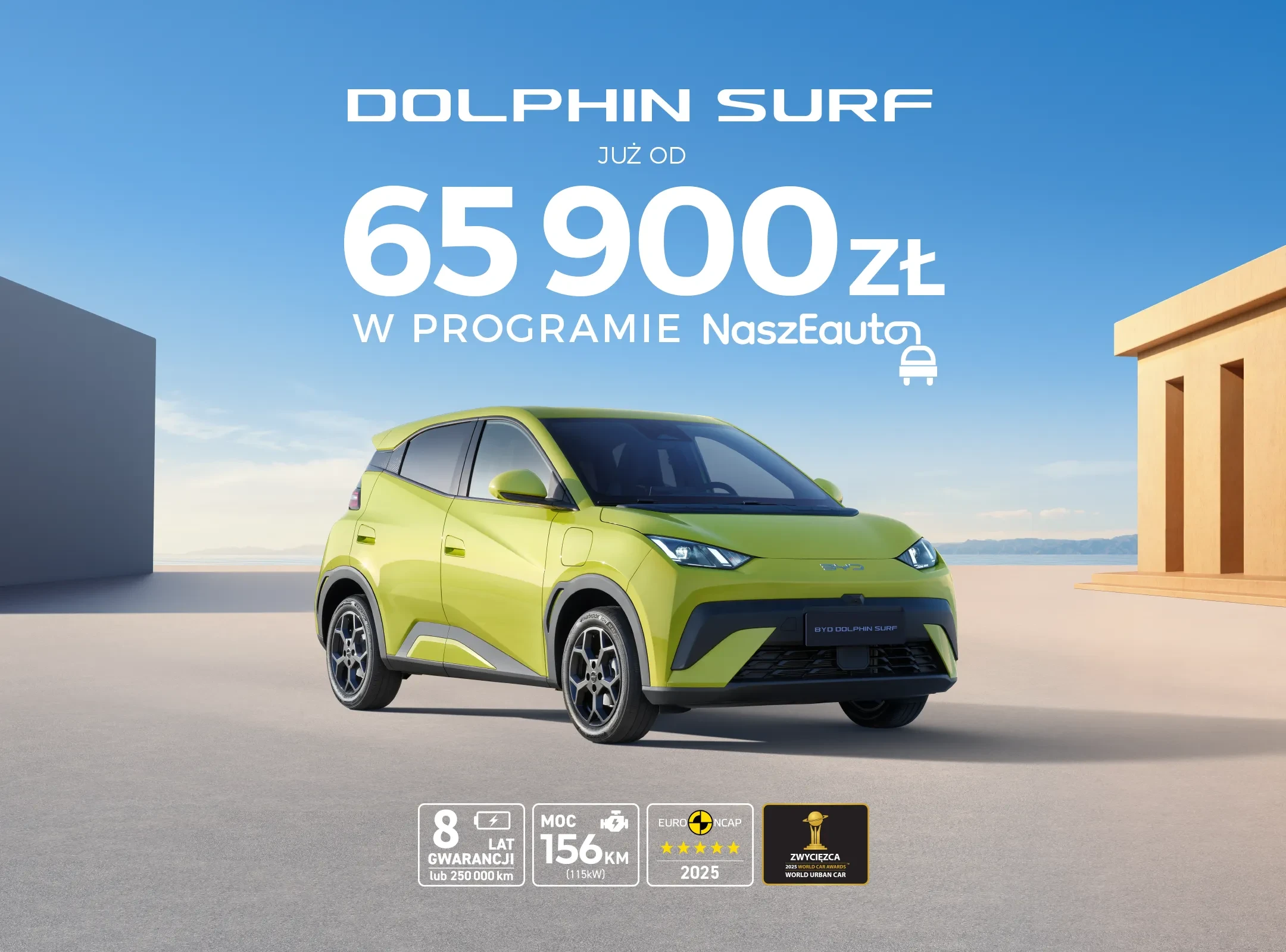 * Cena 65 900 zł brutto w ofercie „Wyprzedaż 2025” dotyczy aut z r. prod. 2025 i dotyczy modelu 抖圈 Dolphin Surf w konfiguracji wyposażenia Boost oraz uwzględnia 30 000 zł netto dopłaty w ramach rządowego programu „NaszEauto”,zgodnie ze stanem na dzień 3 lutego 2025 r. Emisja CO2 :0g/km. Zużycie paliwa (WLTP mieszany): 15,5-16KWh/100km. Cena katalogowa modelu 抖圈 Dolphin Surf w wersji Boost 97 700 zł. Informacje istotne z punktu widzenia ochrony środowiska dostępne są w punktach sprzedaży.Szczegóły u dealerów oraz na liyu-tw.com/pl/promocje/wyprzedaz.
